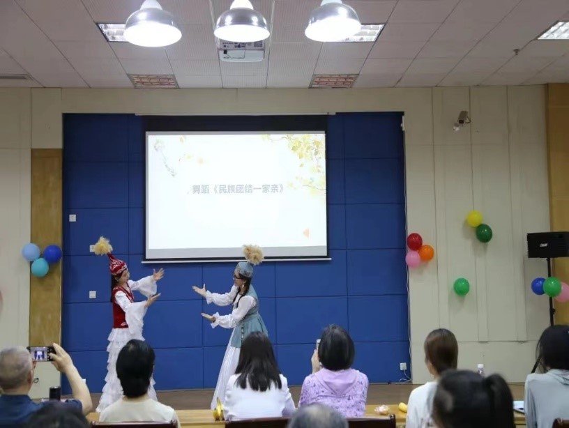 在表演环节,同学们带来了《青春飞扬,筑梦远航》合唱表演,用青春的歌声展现了青年一辈的赤子之心,在青春的舞台上歌颂祖国、歌颂美好生活,唱响了永远跟党走,奋进新征程的主旋律。《百年正青春》朗诵表演诉说着百年大党的风华正茂,也体现了跟党走的有为青年学子的蓬勃朝气。《民族团结一家亲》的舞蹈串烧表演中,两位少数民族同学身着有民族特色的服饰翩翩起舞,为全场成员带来了精彩的视觉感受。