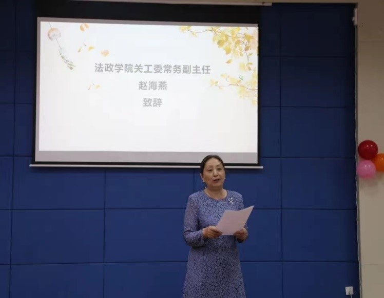 赵海燕在致辞中感谢校关工委一直以来对学院关工委工作的大力支持,并表示法政学院关工委始终以立德树人为根本任务,以社会主义核心价值观为引领,不断加强思想政治工作,助力师生成长成才,未来也将努力开创关工委工作新局面。